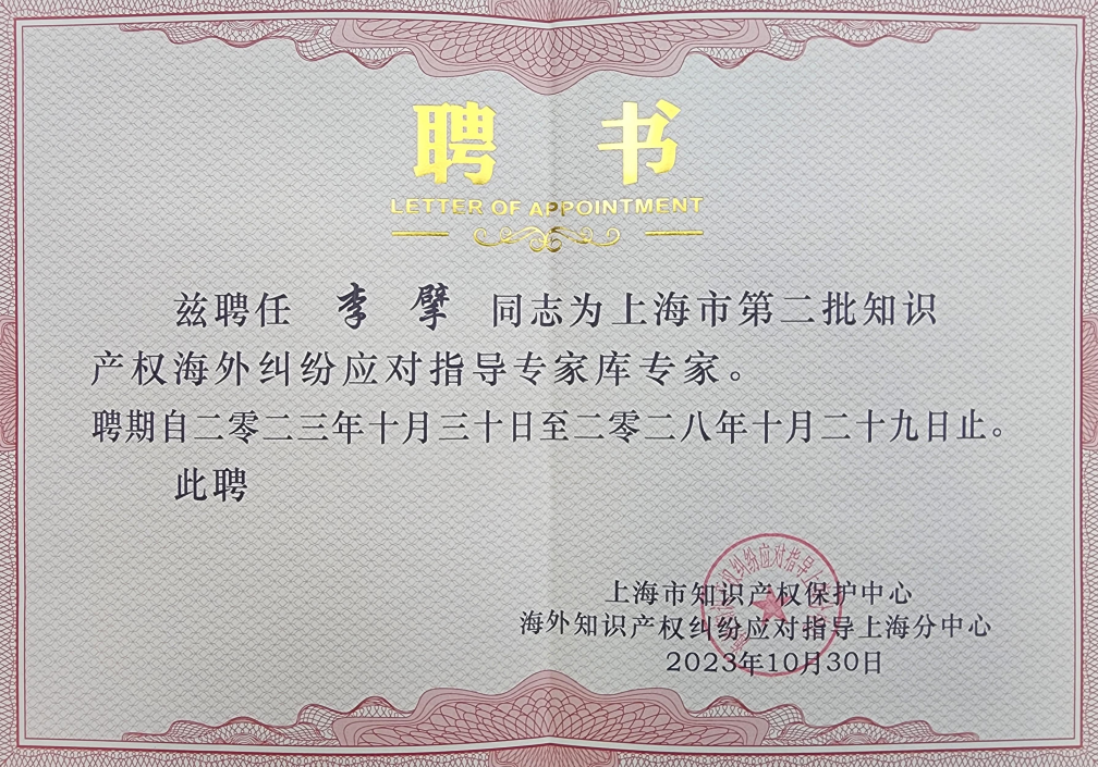>欧博官网>新闻动态>集佳上海分所骆苏华、李擘获聘成为上海市第二批知识产权海外纠纷应对指导专家库专家